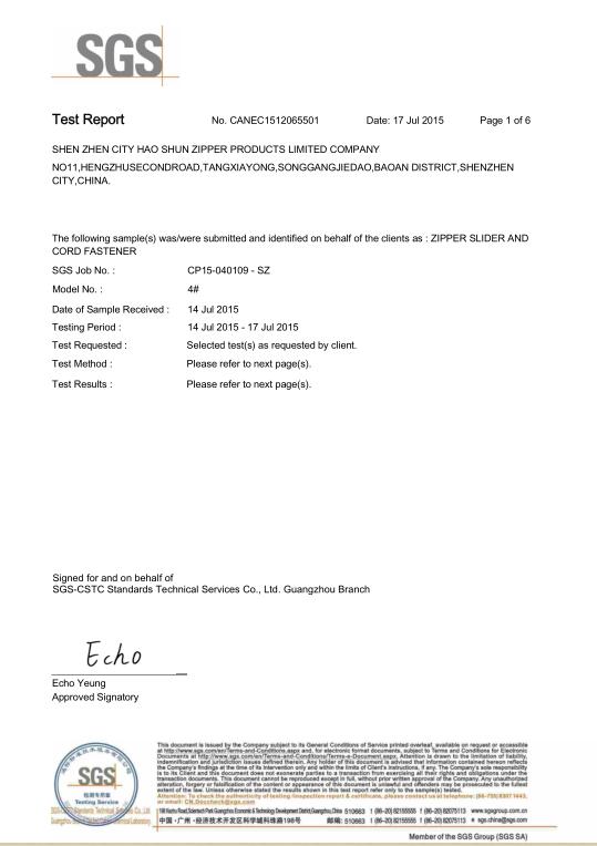 深圳豪順拉鏈《ROHS十項檢測報告》第1頁