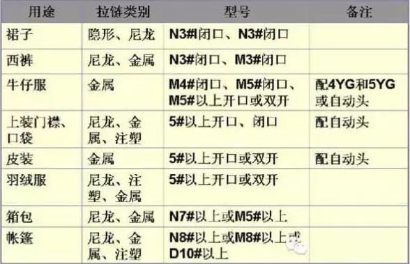 強(qiáng)力推薦--不同用途拉鏈型號(hào)選擇表